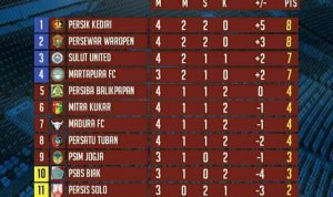 Peringkat 4 milik Martapura FC yang menang 1-0 dari Persatu Tuban. Hasil lain, PSBS Biak menang 1-0 atas Madura FC.