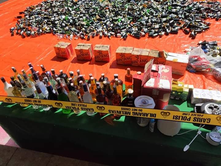 UU Darurat senjata tajam jenis pisau badik dan parang 83 buah, senjata api 1 unit. Sedangkan jenis cukai yakni minuman alkohol merk kasegaran tidak berpita cukai 2.880 botol, alkohol bermerk dilekati pita cukai palsu 1.986 botol, handphone berbagai merk 45 buah