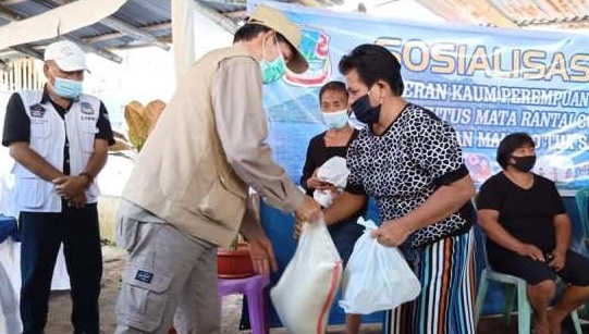 Bansos berupa bahan pokok yang terdiri dari 10 kilogram beras dan 15 kaleng ikan kaleng serta masker, diberikan Walikota GSVL di sela kegiatannya dalam kegiatan sosialisasi peran kaum perempuan dalam memutus mata rantai Covid-19.