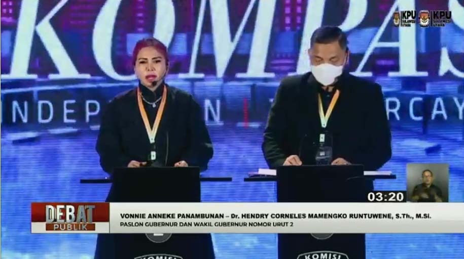 Manado, Barta1.com – Debat ketiga Pilgub Sulut kian ramai. Calon Gubernur nomor urut 2, Vonnie Anneke Panambunan (VAP) mengklaim tidak mengangkat keluarga sebagai pejabat di daerah.