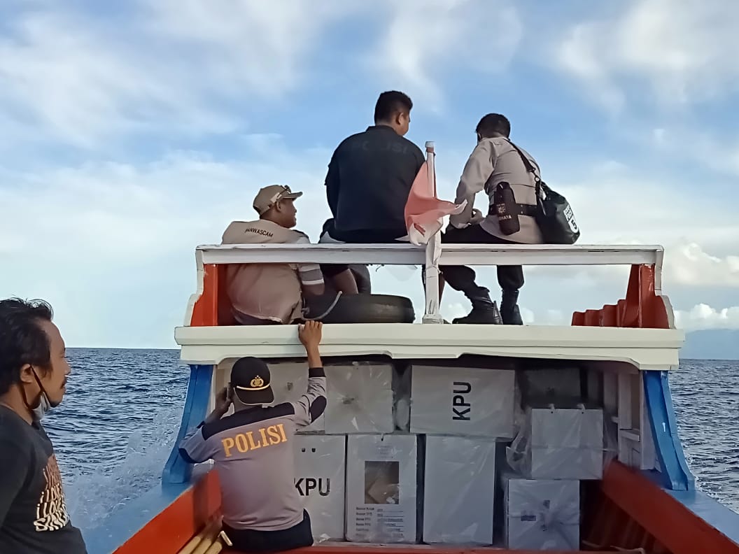 Logistik pilkada tersebut diberangkatkan melalui Kampung Kahakitang sekitar pukul 06.40 WITA menuju Kota Tahuna, diawasi Ketua PPK Tatoareng, Pdt Samuel Dompas bersama anggota dan Ketua Panwaslu Kecamatan Tatoareng, Mitjel Mananggel, yang mendapat pengamanan dan pengawalan ketat sejumlah aparat kepolisian dipimpin Ipda Ricky Taliwuna.