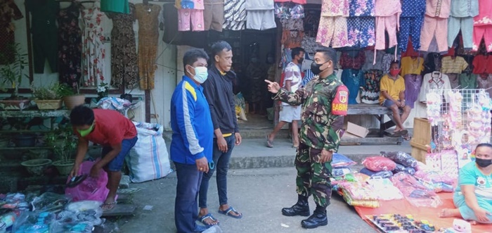 Sangihe, Barta1.com – Koramil Tamako 1301-03 turun memantau Pemberlakuan Pembatasan Kegiatan Masyarakat atau dikenal dengan istilah PPKM. Terpantau Serda Ramli bersama aparat Kampung di Pasar Rakyat Ngalipaeng, Kecamatan Manganitu Selatan, sedang melakukan sosialisasi pentingnya menerapkan Protokol Kesehatan (Prokes) melalui perasi Yustisi, Sabtu (31/07/2021) di wilayah Selatan Sangihe tersebut.