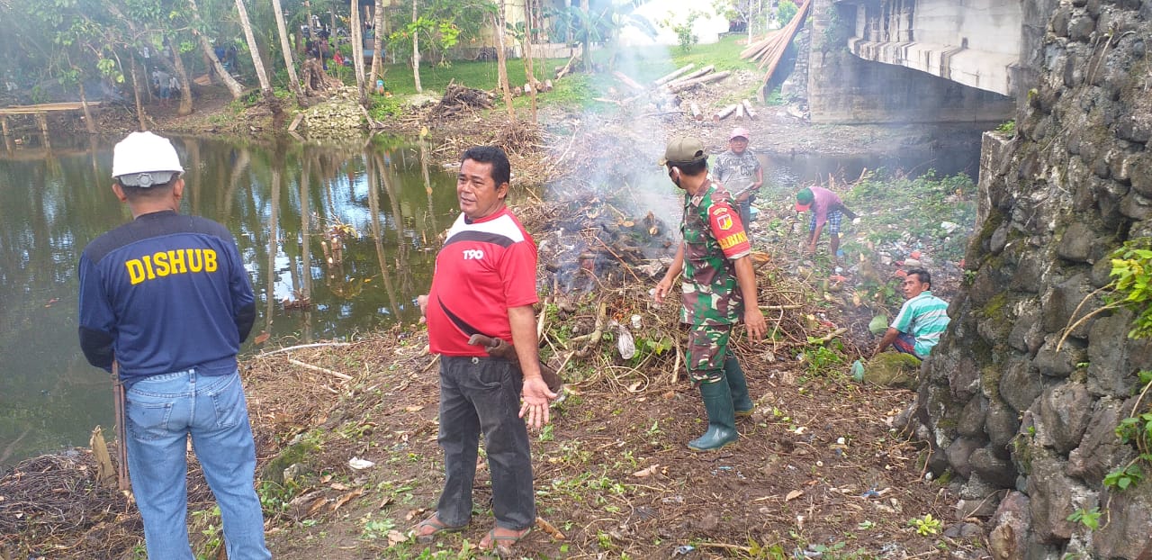 Talaud, Barta1.com – Guna menciptakan suasana dan lingkungan yang sehat dan bersih, Polsek Lirung bersama masyarakat Desa Moronge membersihkan sampah di Jembatan Rama /Danau Lotta Kecamatan Moronge Talaud, Senin (18/04/2022)