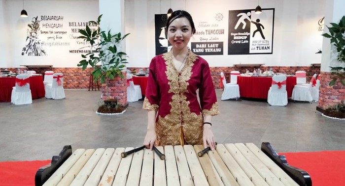 Belajar Kolintang sejak Kelas 6 SD hingga saat ini, Jilly terlihat begitu lihai saat mengetuk bilah-bilah papan dengan stik pemukul menghasilkan harmonisasi indah dengan grup Ma’azani.