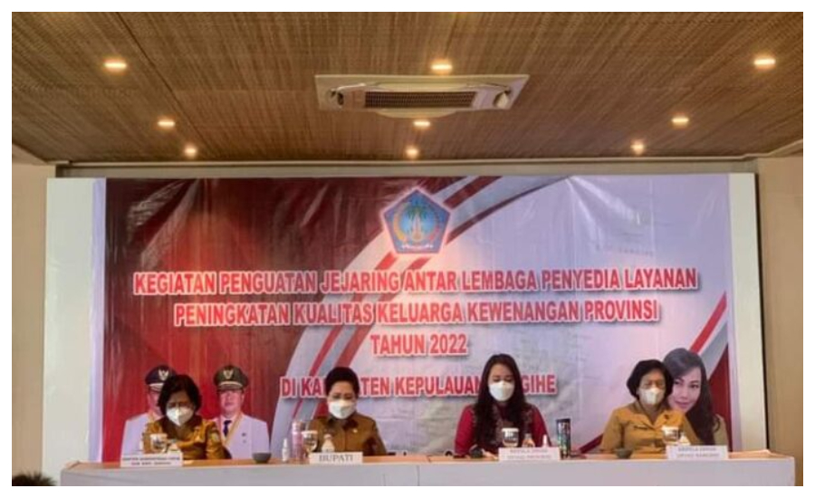 Sangihe, Barta1.com – Pj. Bupati Sangihe dr. Rinny Tamuntuan membuka kegiatan Penguatan Jejaring Antar Lembaga Penyedia Layanan Peningkatan Kualitas Keluarga Kewenangan Provinsi Sulawesi Utara (Sulut) yang dilaksanakan di Ballroom Dialoog Hotel Tahuna, Selasa, (31/5/2022).