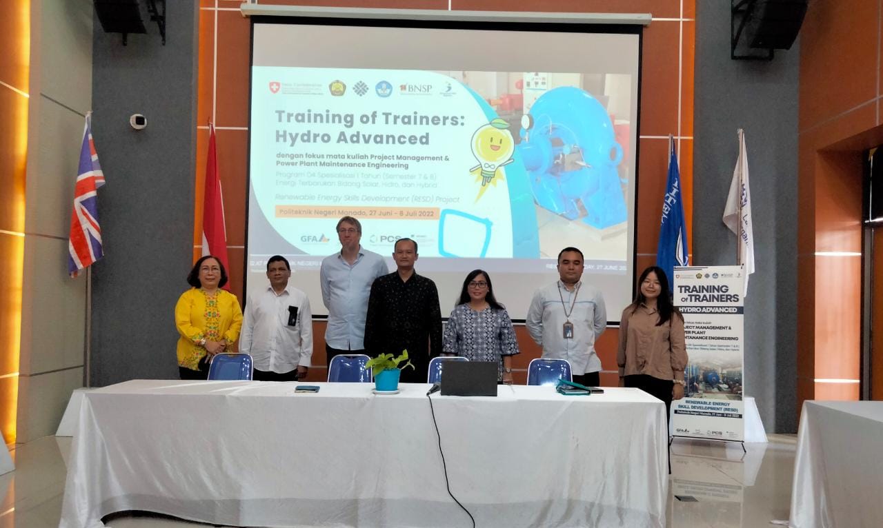 Manado, Barta1.com – Politeknik Negeri Manado (Polimdo) dipercayakan oleh Renewable Energic Skill Development (RESD)  menjadi tuan rumah pelaksanaan training of trainers (ToT) hydro advenced selama 5 hari, Senin-Jumat (27/06/-08/07-2022).