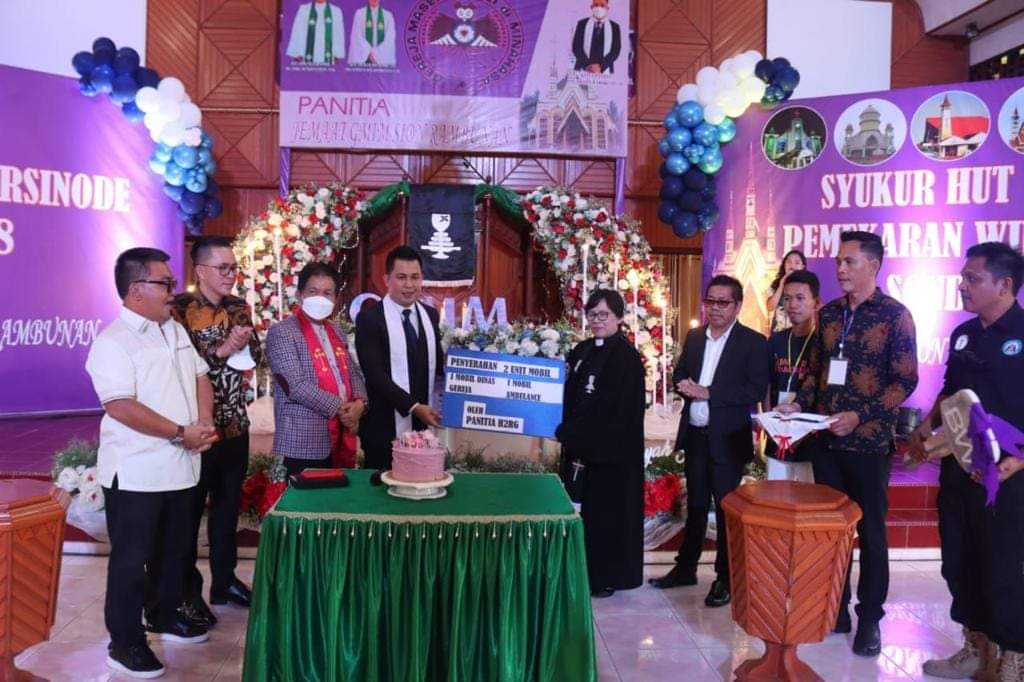 Pnt Braien Waworuntu serahkan 2 mobil operasional ke GMIM Sion Tambunan. (foto: istimewa)