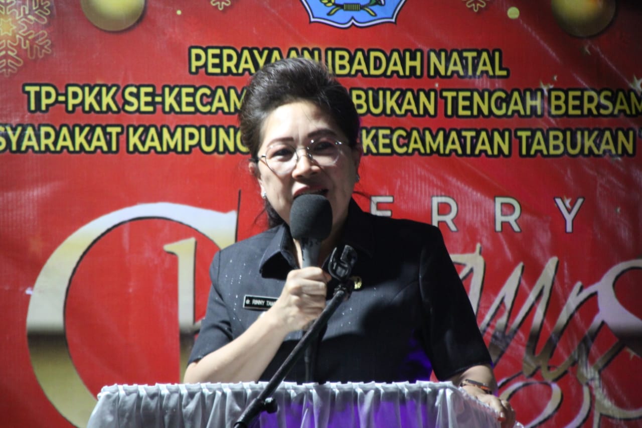 Foto : Pj. Bupati Kepulauan Sangihe dr. Rinny Tamuntuan menyampaikan sambutan dalam acara Natal TP. PKK Sangihe di Kampung Kulur 1. (Dok. Istimewa)