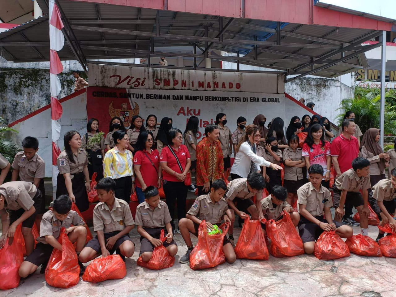 Kepedulian pun dilakukan istri Walikota Manado yang juga Ketua TP-PKK Kota Manado, Irene Angouw-Pinontoan yang menghadiri penyaluran bantuan bersama Kadis Pendidikan dan Kebudayaan Manado, Steven Tumiwa MPd, dan Kepala Bidang Pembinaan SMP Grace Sondakh di SMPN 1 Manado.