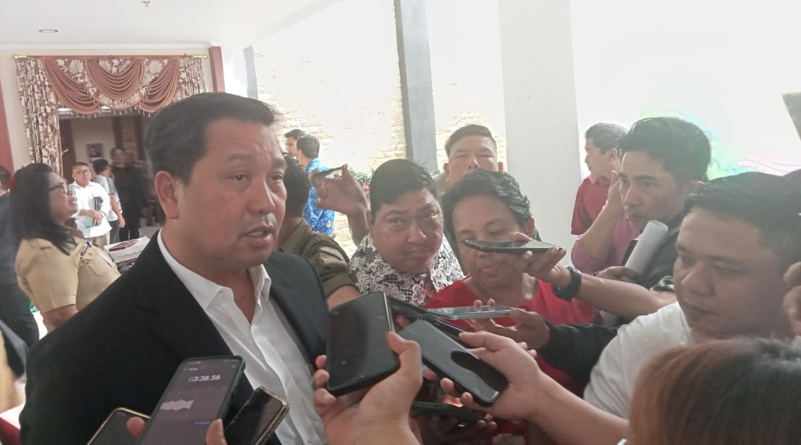 Anggota DPRD Provinsi Sulut, James Tuuk, interupsi persoalan kelangkaan solar pada saat rapat Paripurna DPRD dalam rangka pengambilan keputusan terhadap rancangan peraturan daerah (Ranperda) pajak daerah dan distribusi daerah Provinsi Sulut, Ruang Paripurna DPRD Provinsi Sulut, Selasa (5/12/2023).