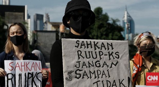 Demo warga mendesak segera sahkan RUU Tindak Pidana Kekerasan Seksual. (foto: cnn indonesia)