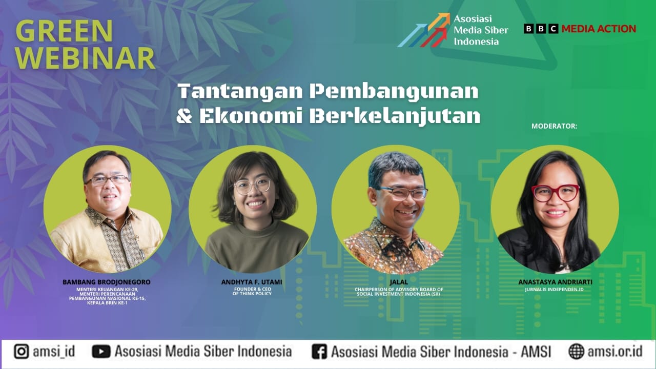 Hal itu terungkap dalam acara “Green Webinar” dengan tema “Tantangan Pembangunan dan Ekonomi Berkelanjutan”, kerja sama Asosiasi Media Siber Indonesia (AMSI) dan BBC Media Action yang berlangsung secara daring, Selasa (9/1/2024).