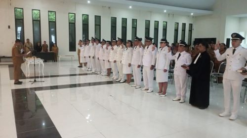 Siau, Barta1.com – Didampingi Asisten Pemerintahan dan Kesra Pemkab Sitaro, Novia Tamaka, Wakil Bupati Heronimus Makainas melakukan pelantikan 14 Penjabat Kapitalau sejumlah kampung di Sitaro, di Auditorium Pemkab Sitaro, Selasa (8/4/2025). Mereka akan menjalankan tugas selama dua tahun, 2025 hingga 2027.