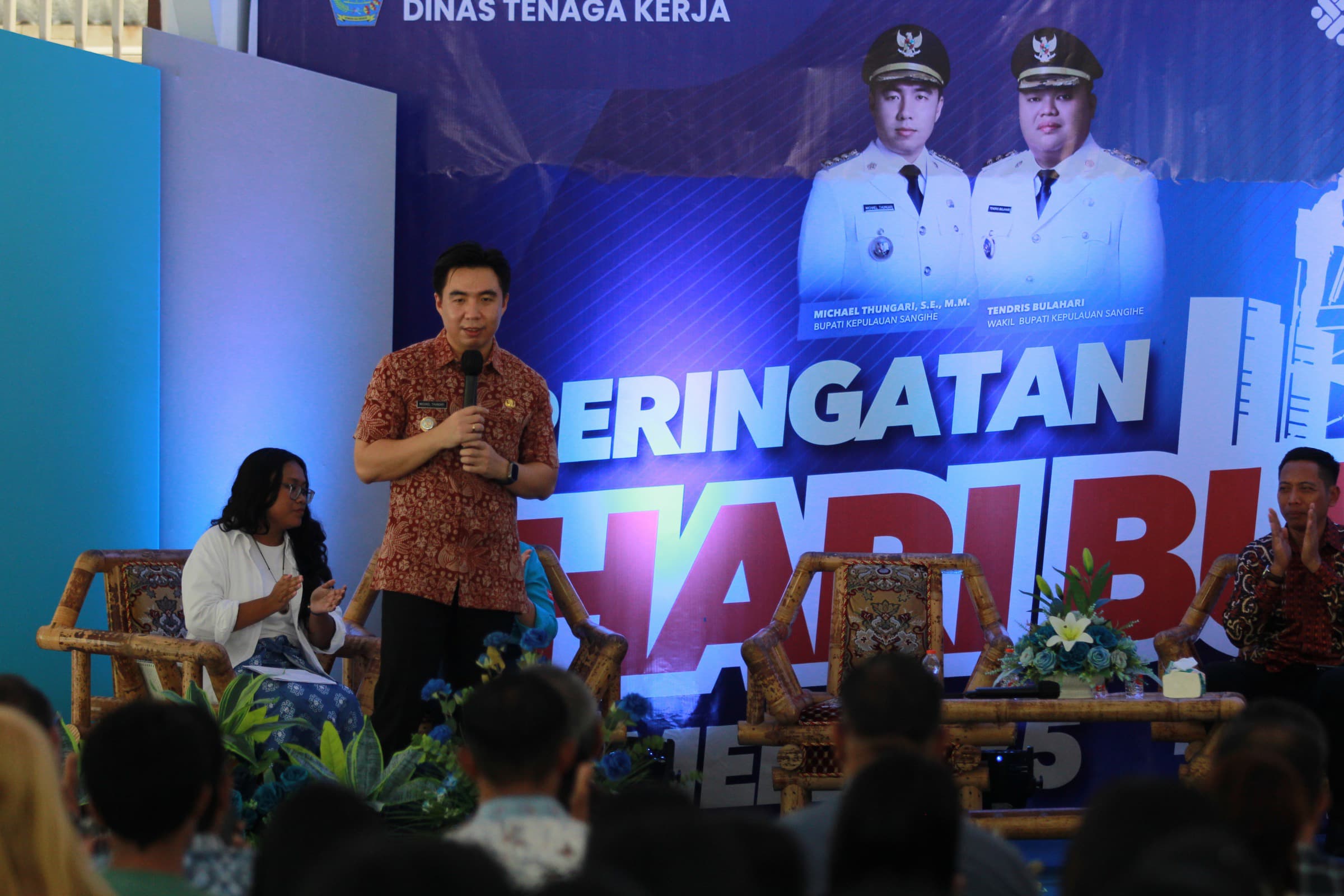 Sangihe, Barta1.com –  Dalam peringatan Hari Buruh yang dirangkaikan dengan pameran bursa kerja di Kabupaten Kepulauan Sangihe, Bupati Michael Thungari menyampaikan imbauan penting kepada masyarakat, khususnya para pencari kerja. Ia meminta warga untuk tidak lagi bekerja di tambang-tambang di wilayah pedalaman Papua, demi alasan keamanan.