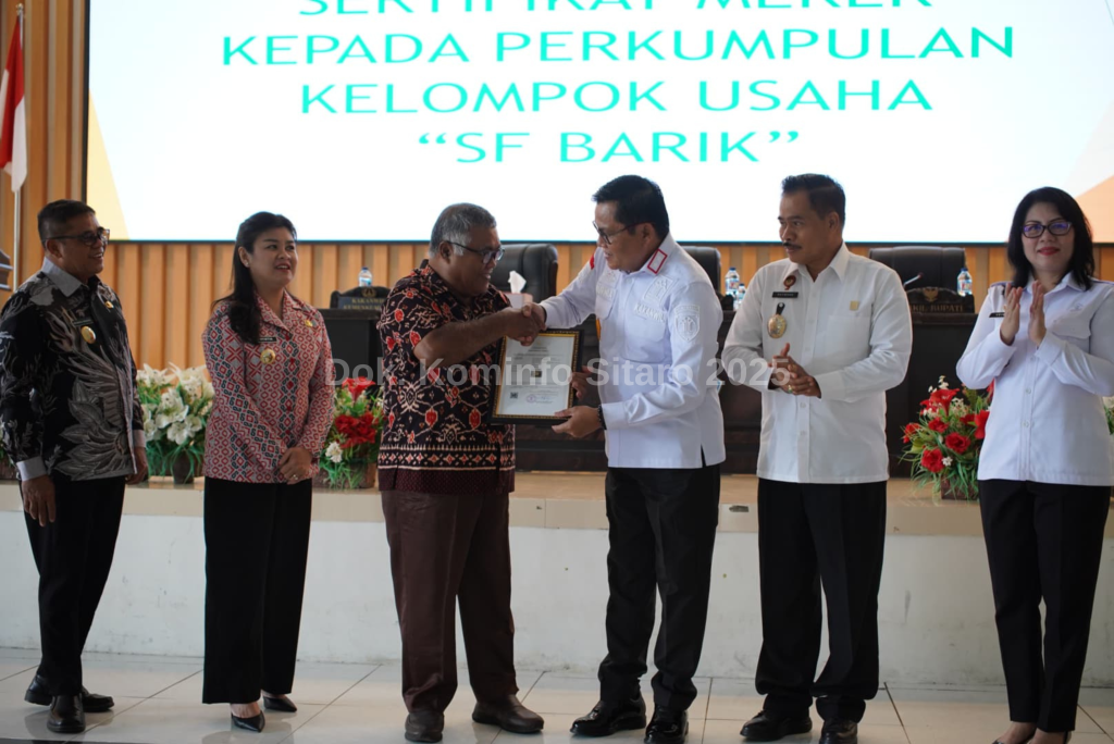 Diakhir kegiatan tersebut turut diserahkan Sertifikat Merek kepada kelompok pelaku usaha SF Barik dan juga penyerahan cendramata.
