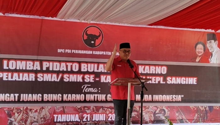 Sangihe, Barta1.com – Ketua DPC PDI Perjuangan Kepulauan Sangihe, Ferdy Sondakh, menegaskan bahwa membangun bangsa tidak cukup dilakukan dari atas, tetapi harus dimulai dari bawah—dari generasi muda, khususnya anak-anak sekolah di daerah. Pernyataan itu disampaikannya saat membuka lomba pidato dalam rangka Bulan Bung Karno, Sabtu, (21/6/2025), di Sekretariat DPC PDI Perjuangan Sangihe.