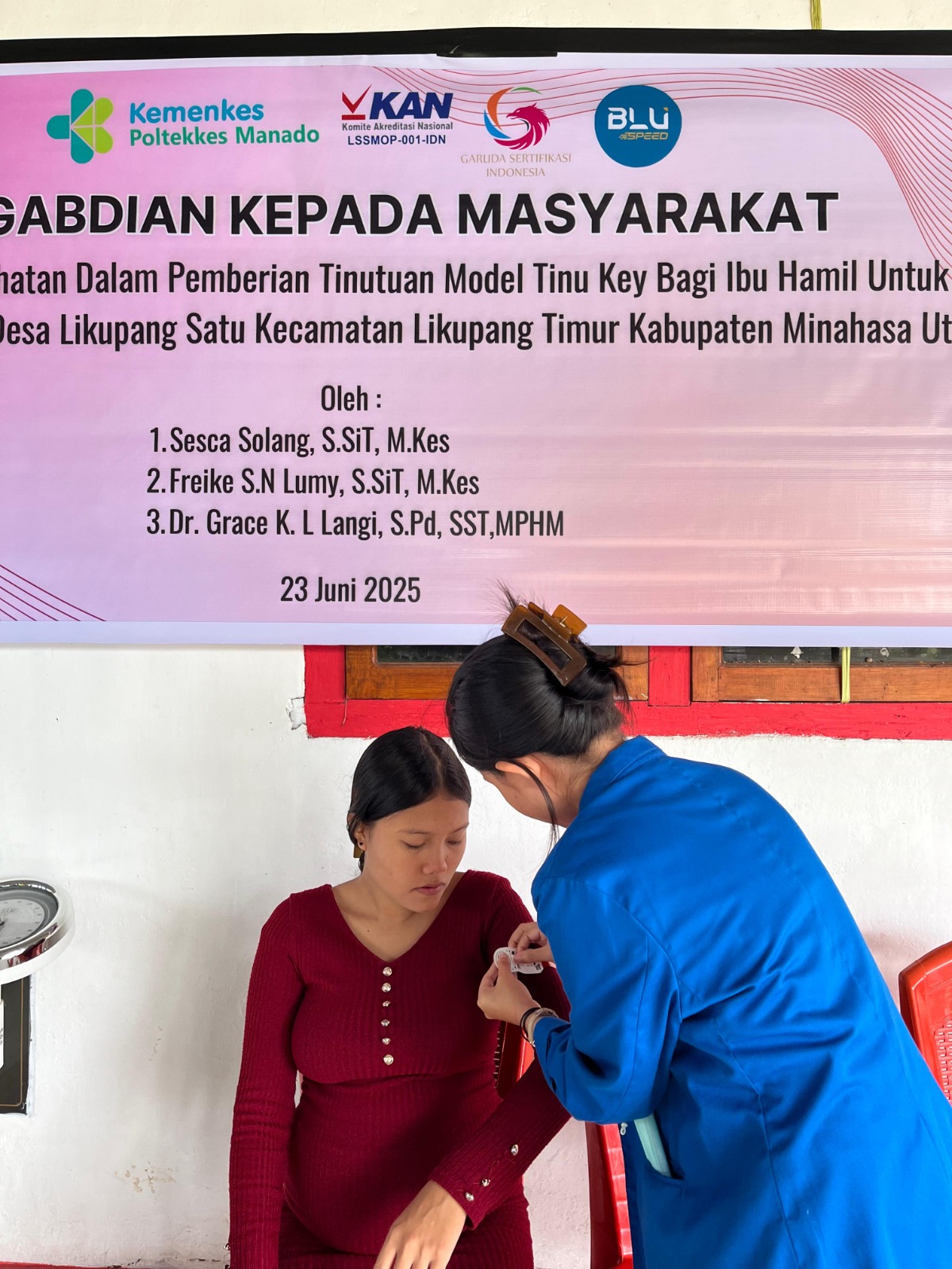 Tim pengabdian kepada masyarakat Poltekkes Kemenkes Manado melakukan pemeriksaan kepada ibu hamil. (foto: istimewa)