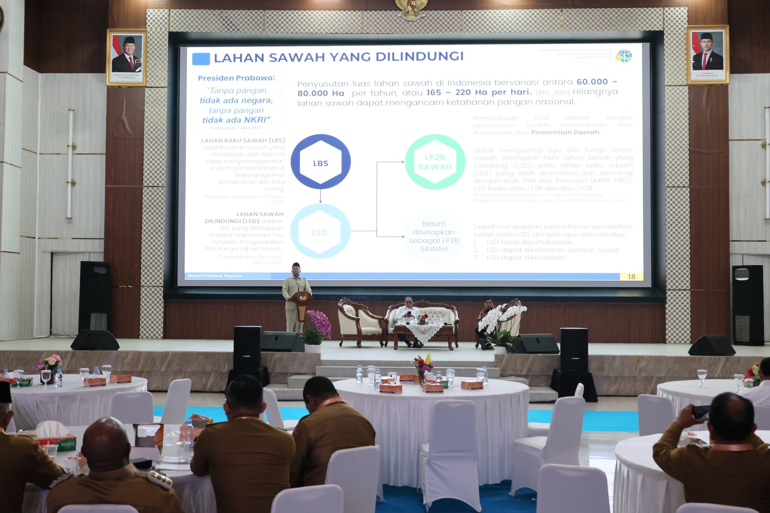 “Yang boleh dikeluarkan izinnya hanya untuk lahan non-LP2B. Sawah LP2B itu mutlak tidak boleh dialihfungsikan. Ini penting saya tekankan kepada para bupati dan wali kota karena banyak sawah hilang akibat rekomendasi yang tidak tepat,” ujar Menteri Nusron di hadapan 86 kepala daerah dan wakil kepala daerah.