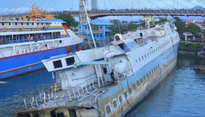 Sangihe, Barta1.com – Pemerintah Kabupaten Kepulauan Sangihe menggelar konferensi pers terkait penanganan permasalahan kapal penumpang KM. Bawangung Nusa yang merupakan aset daerah. Kapal hibah dari pemerintah pusat itu diketahui tenggelam di Pelabuhan Manado sejak 2015 dan hingga kini belum juga diangkat oleh pihak operator.