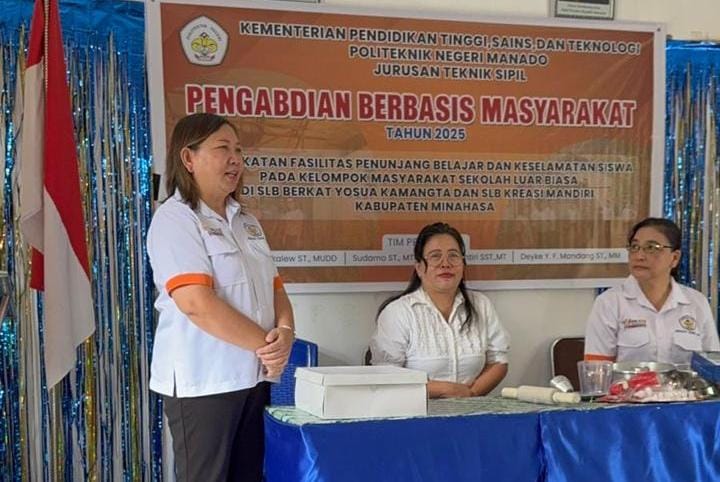 Manado, Barta1.com – Jurusan Teknik Sipil Politeknik Negeri Manado (Polimdo) kembali melaksanakan kegiatan pengabdian berbasis masyarakat. Kali ini, kegiatan difokuskan di dua Sekolah Luar Biasa (SLB) yang berada di Kabupaten Minahasa, yakni SLB Berkat Yosua Kamangta dan SLB Kreasi Mandiri, Rabu, 9 Juli 2025.