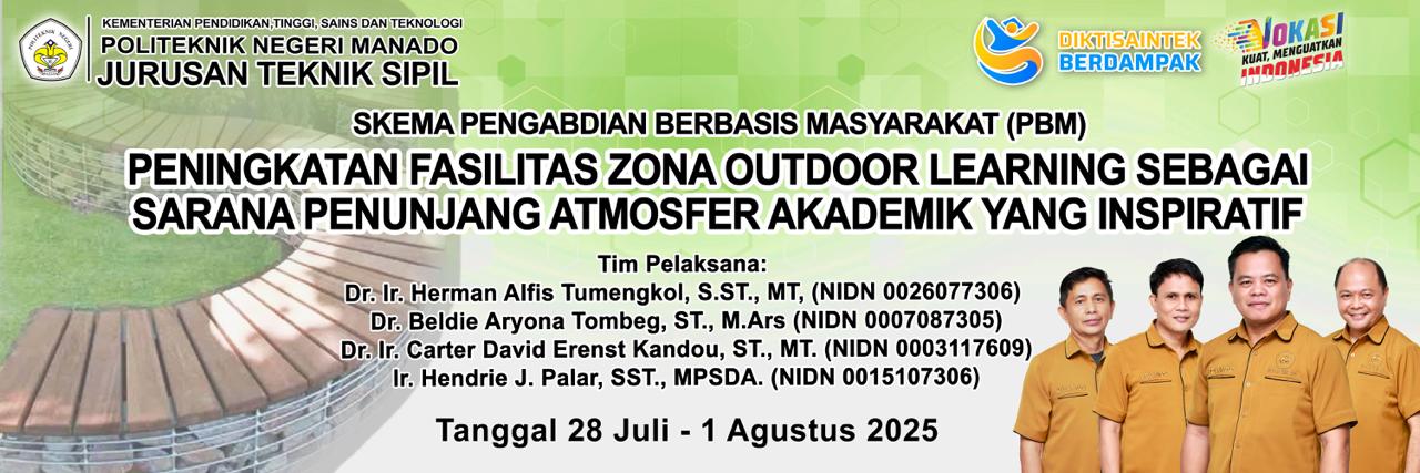 Ketua tim pelaksana, Dr. Ir. Herman Alfis Tumengkol, SST., MT, didampingi sejumlah dosen seperti Dr. Beldie Aryona Tombeng, ST., M.Ars, Dr. Ir. Carter E. Kandou, ST., M.Ars, serta Ir. Hendrie Joudi Palar, SST., MPSDA, menjelaskan bahwa kegiatan ini merupakan bagian dari program Pengabdian kepada Masyarakat yang memperoleh pendanaan internal Polimdo tahun 2025.