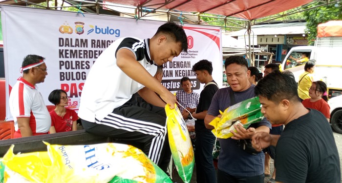 Bitung, Barta1.com — Polres Bitung kembali melaksanakan kegiatan pasar murah dalam rangka gerakan pangan murah Polri dan dalam menyambut HUT kemerdekaan Republik Indonesia ke-80, bekerjasama dengan Bulog Sulutgo, yang bertempat di Pasar Winenet Kelurahan Winenet Kecamatan Aertembaga, Kota Bitung, Jumat (8/8/2025).
