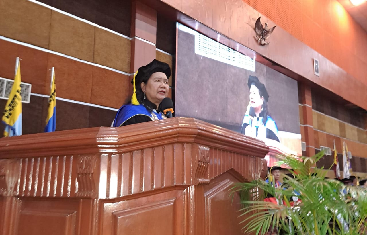 Direktur Polimdo, Dra. Mareyke Alelo, MBA, dalam sambutannya menyampaikan pesan penuh makna dan motivasi kepada seluruh mahasiswa baru yang hadir. Ia menekankan pentingnya memanfaatkan waktu kuliah dengan sebaik-baiknya untuk mengejar ilmu pengetahuan dan teknologi.