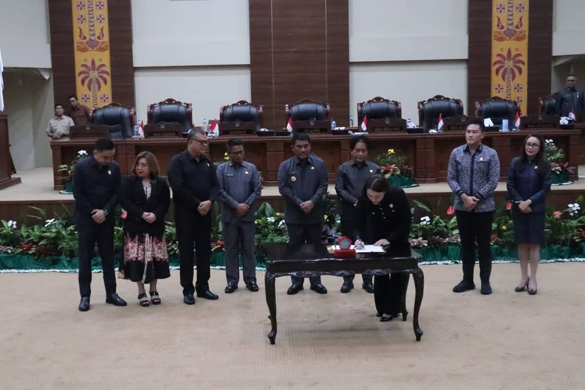 Manado, Barta1.com – Rencana Pembangunan Jangka Menengah Daerah (RPJMD) Provinsi Sulawesi Utara (Sulut) tahun 2025–2029 akhirnya ditetapkan menjadi Peraturan Daerah (Perda). Namun, penetapan ini bukan tanpa catatan. Dalam rapat paripurna yang digelar Jumat (8/8/2025), sejumlah fraksi di DPRD Sulut menyampaikan pandangan akhir yang mengandung pesan penting, sekaligus peringatan bagi Pemerintah Provinsi.