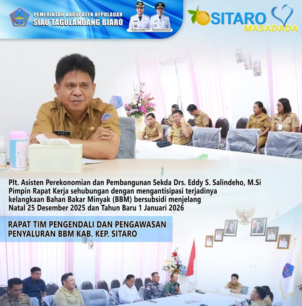 Siau, Barta1.com – Gerak cepat menjawab keresahan masyarakat akan kesulitan mendapatkan Bahan Bakar Minyak (BBM) dalam beberapa hari terakhir ini langsung disikapi Pemkab Sitaro. Bupati Chyntia Kalangit dan Wabup Heronimus Makainas melalui Plt Asisten Perekonomian dan Pembangunan Sekda Sitaro Eddy Salindeho langsung melakukan rapat intens dengan stakeholder terkait termasuk pertamina dan APMS pada Senin (13/10/2025).