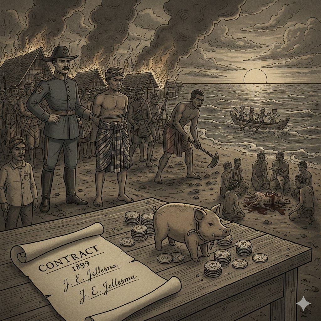 Kontrak 1899 adalah perahu setan itu. Ia adalah malapetaka yang sengaja dihanyutkan oleh Pemerintah Kolonial dan terdampar di seluruh pelosok Nusalawo, memaksa rakyat untuk terus membayar dengan darah, keringat, dan harta benda, hanya agar kutuk itu bisa “dilepas” untuk sementara.
